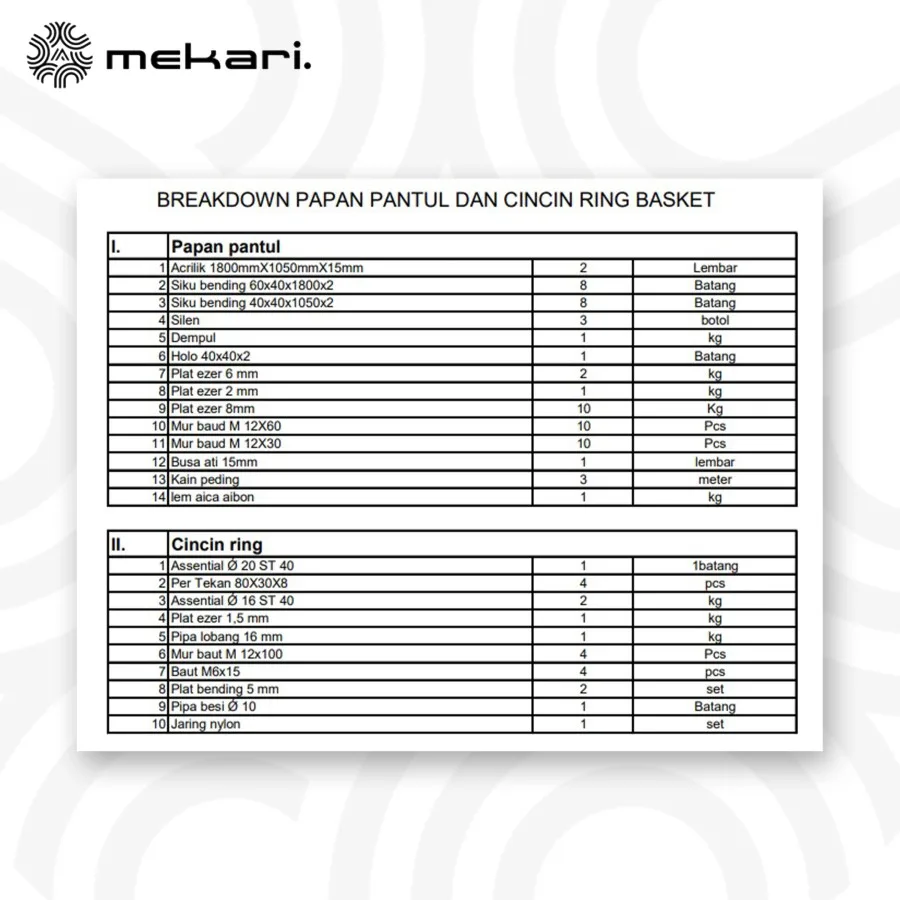 – 1 Packing dibungkus BUBBLEWRAPP untuk ring basket, jaring, dan mur baut set